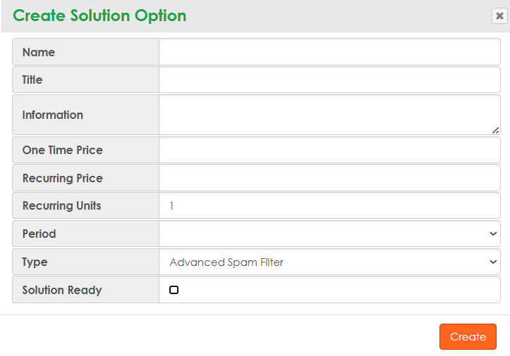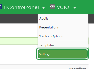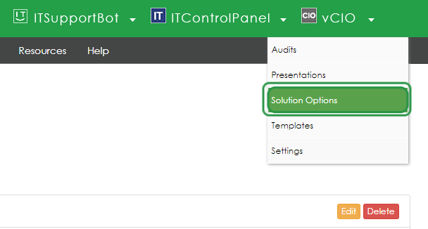 Once you finish adding your types and categories, go to the Green bar>> vCIO>> click on Solution Options