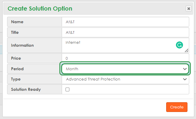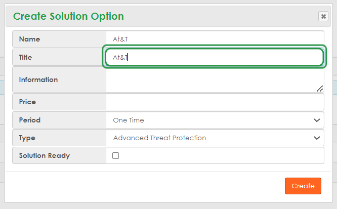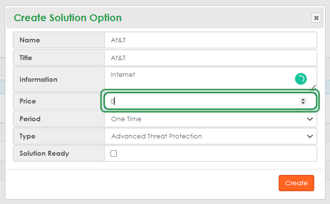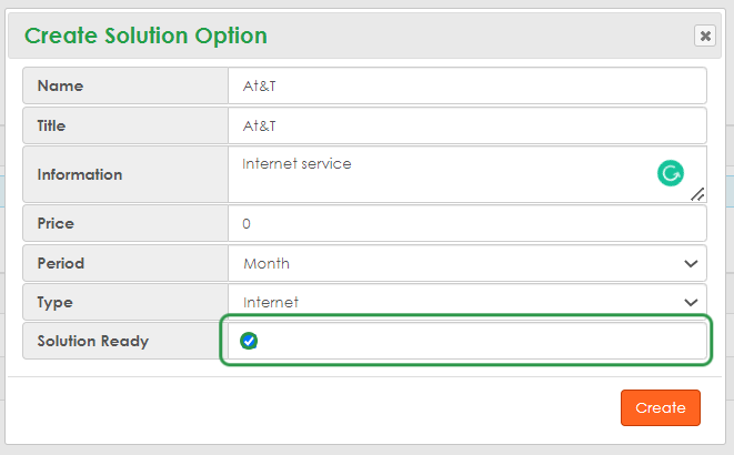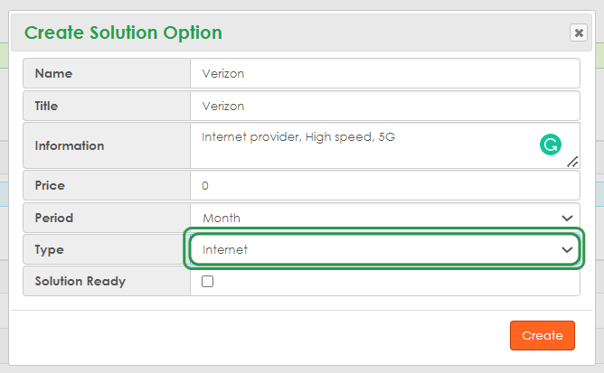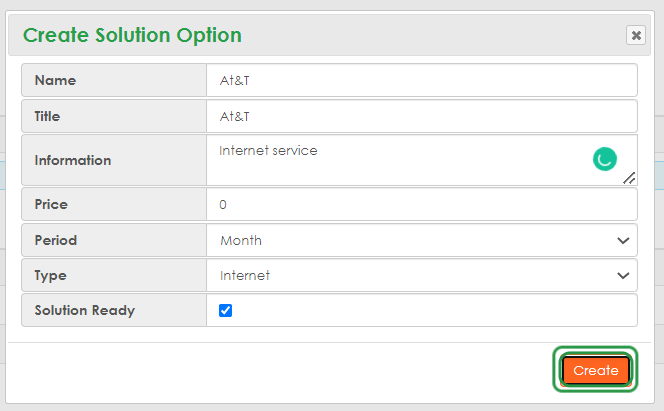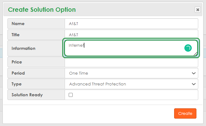 In the "Information" box, write the information or characteristics about that solution (For internet case: 5G, High Speed, 1 GIG).